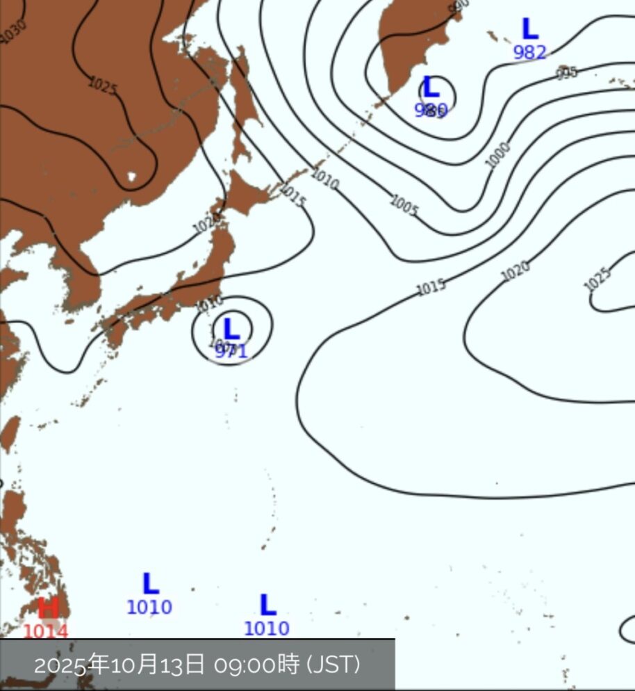 13日(月)は、台風23号が日本の南海上を発達しながら通過していきそうなので、大気の状態は不安定となり、突然の雨や雷雨がある可能性があります。