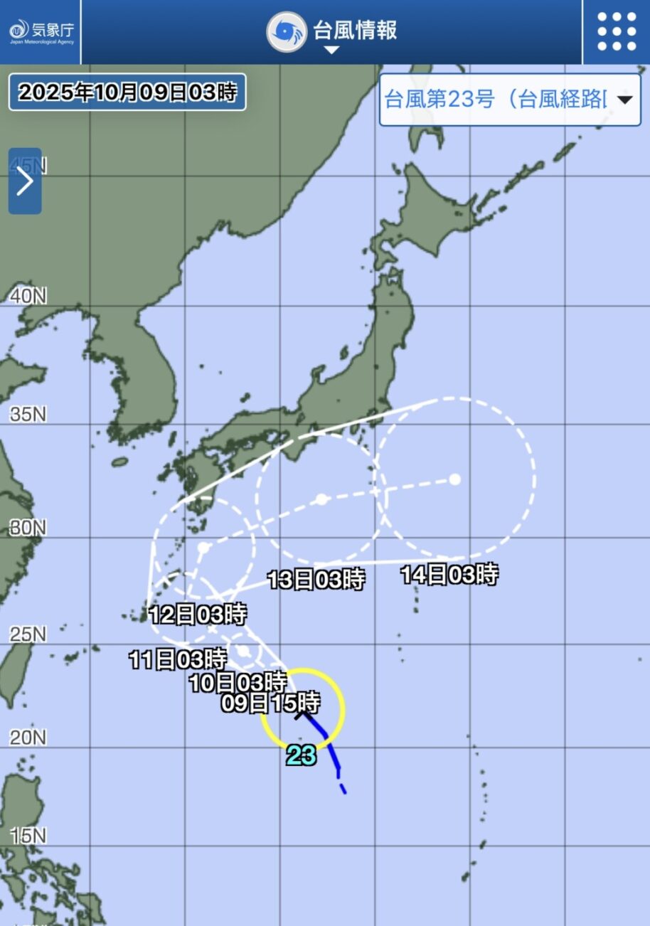 台風23号は、日本の南海上を北西に向かって進んでおり、この後はさらに発達しながら沖縄や奄美へ近づき、進路を北〜北東よりへ変え、日本の南海上を通過していく見込みですが、動きによっては大きく予報が変わる可能性があるので、常に最新の気象情報を確認して、注意するようにしましょう。