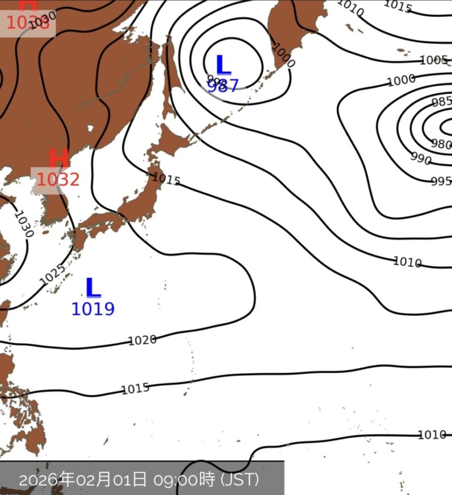 2月1日(日)は、高気圧に覆われてきそうですが、日本の南海上を低気圧が通過するので、大きな影響はなさそうですが、多少雲が出やすくなるでしょう。