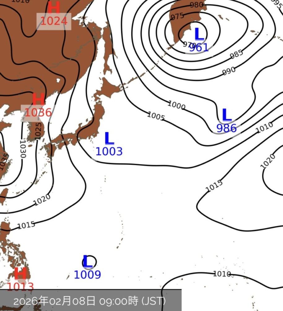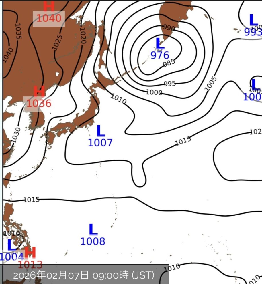 7日(土)から8日(日)にかけて、上空の強い寒気が南下し、徐々に冬型の気圧配置が強まってくる見込みです。また、関東の南東海上には低気圧があり、その低気圧によって天気は下り坂となりそうです。