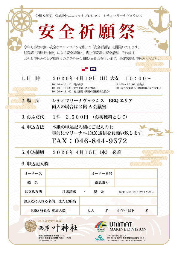 安全祈願祭2026を2026年4月19日(日)開催いたします。