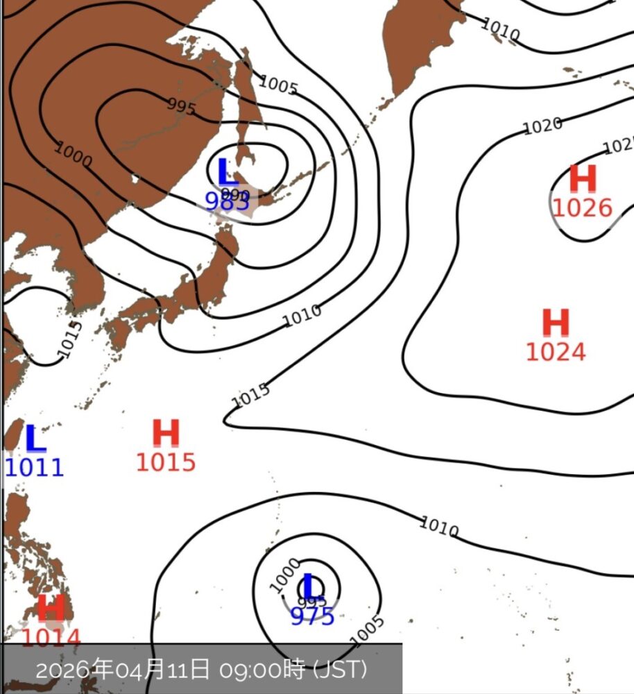 11日(土)は、前線は南海上に南下し、高気圧に覆われてきそうです。朝のうちはまだ雲が多いものの、次第に晴れてくるでしょう。