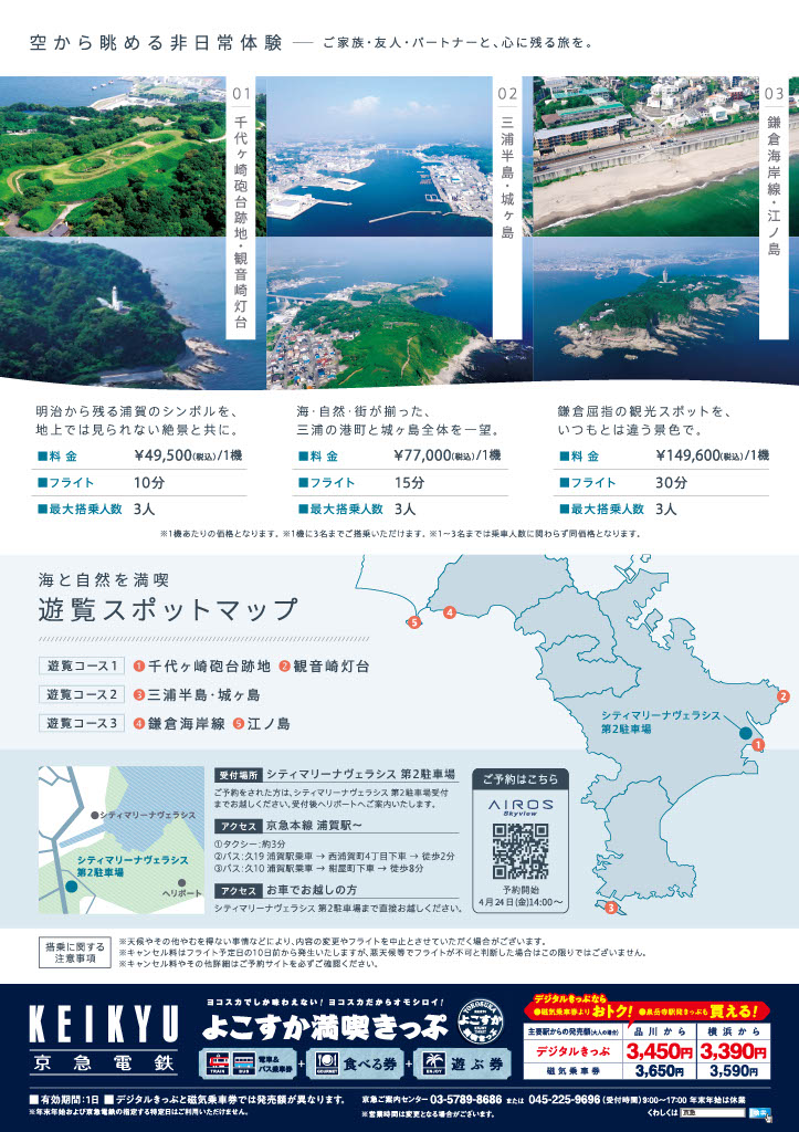 上空からの景色を楽しみたいという方は、直接のお問合せを宜しくお願い致します。ヴェラシスでの受付はしておりません。